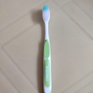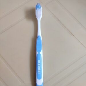 A toothbrush is a small tool designed for cleaning teeth, gums, and the tongue. It is an essential part of oral hygiene, used to remove food particles, plaque, and bacteria to maintain dental health and prevent issues like cavities, gum disease, and bad breath.