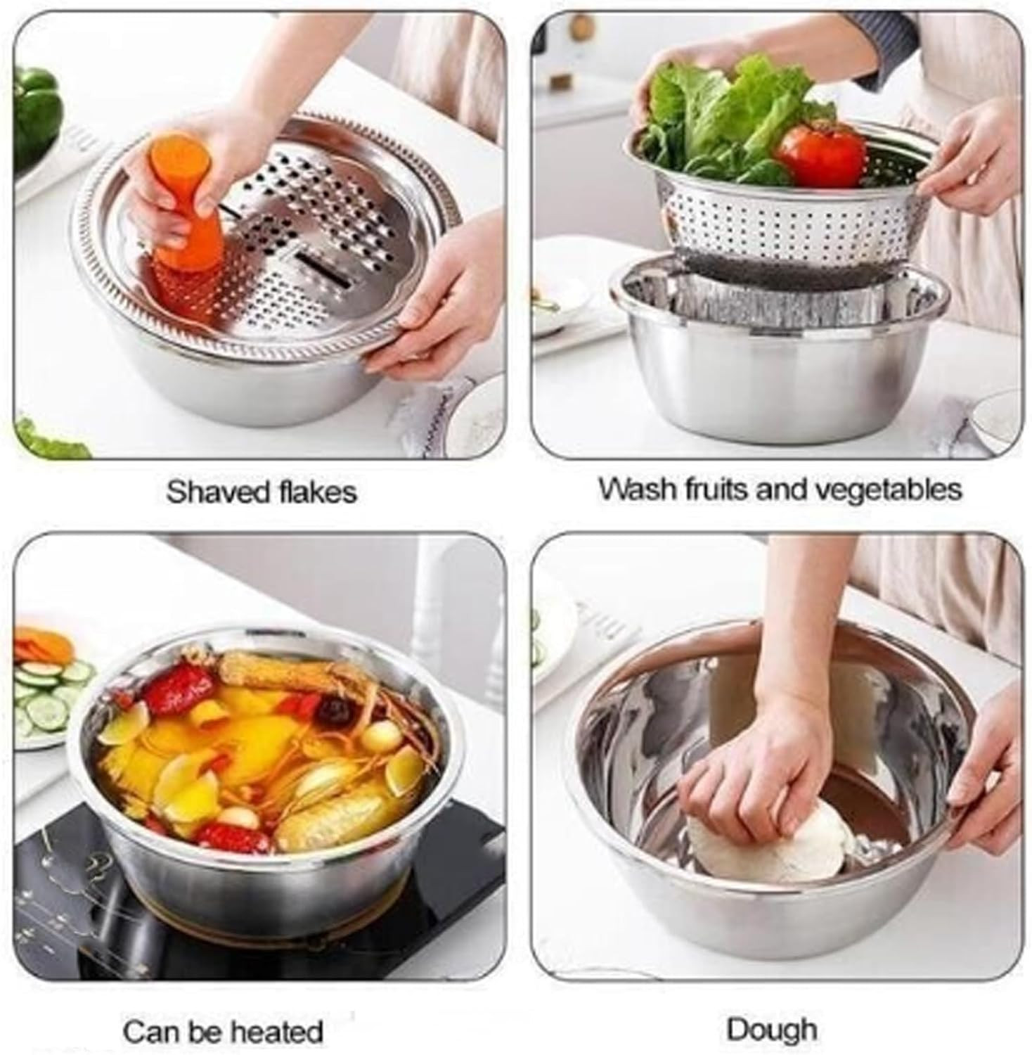 - Stackable: Saves space by stacking with kitchen strainer and salad bowl